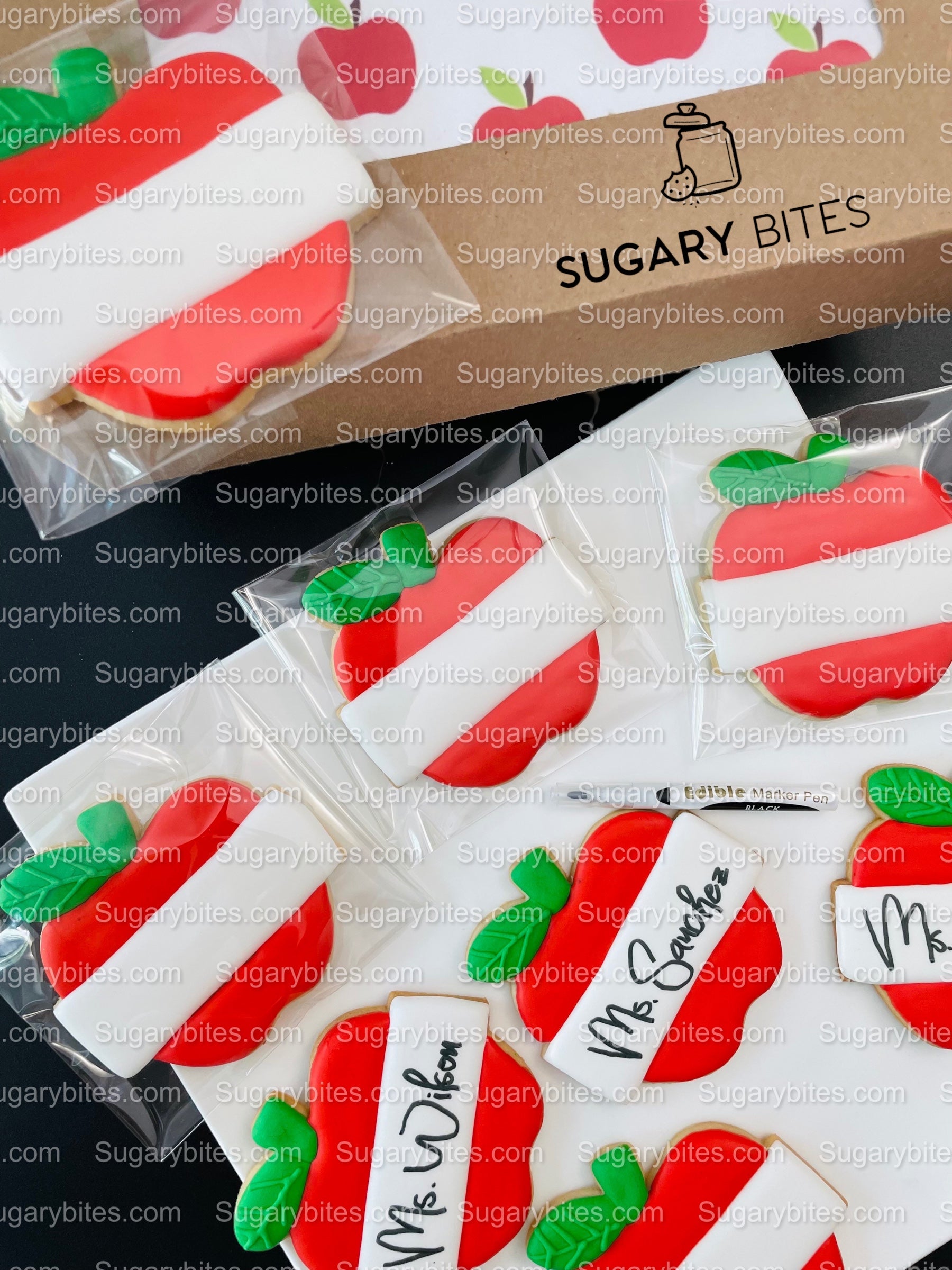 Our delicious and beautiful Large Apple sugar gourmet fresh baked cookies sets are great for back to school, teacher appreciation week, school gift, Thank you gift, graduation, cookie gift set or just to enjoy with your loves.