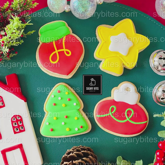 • 12 freshly baked vanilla or gingerbread sugar cookies in fun Christmas shapes: