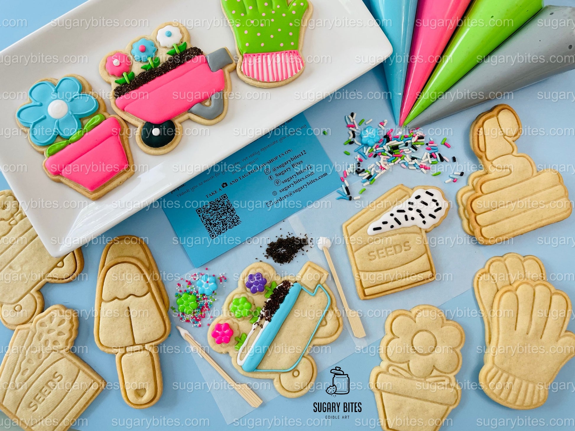 Gardening Cookie Decorating Kit, DIY Spring Sugar Cookie Decorating Kit, **INCLUDES 24 or 26 ITEMS**, (Large Cookies) with Deluxe Sprinkles!