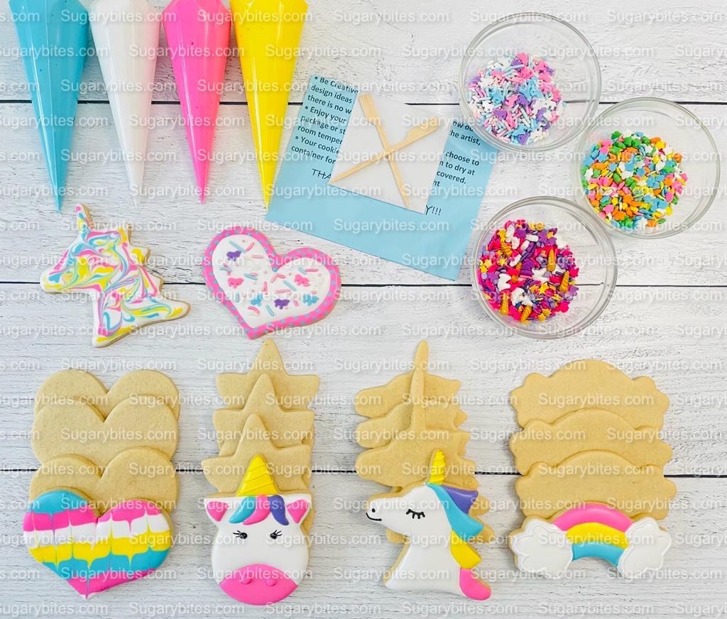 Unicorn Cookie Decorating Kit, DIY Unicorn Sugar Cookie Decorating Kit, **INCLUDES 25 ITEMS**, (Large Cookies)… with Free Bonus!!!….. FREE BONUS!!