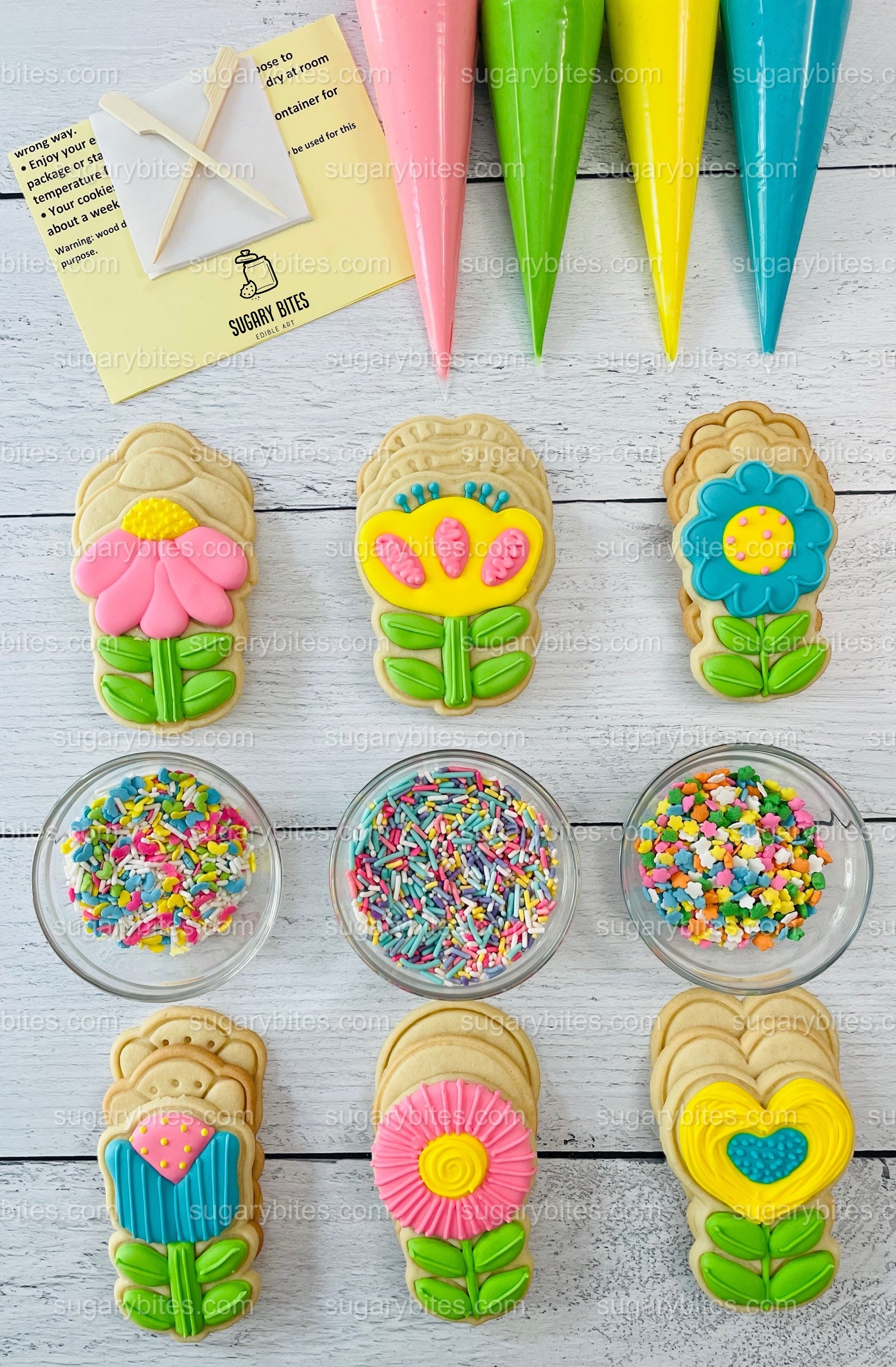 Flower Cookie Decorating Kit, DIY Flower Cookie Decorating Kit, Spring/Easter Diy cookie kit, **INCLUDES 24 ITEMS** (Large Cookies)