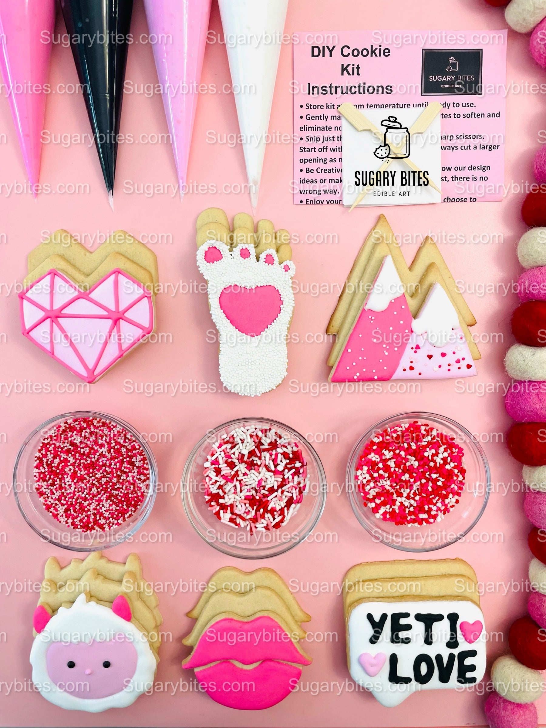 We hope you and your kids and loved ones love this Valentine’s Day cookie decorating kit as much as we love making them.
