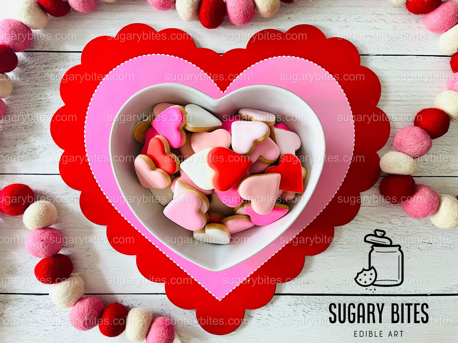 💌 Each order includes 35 mini heart cookies decorated with delicious royal icing.
